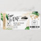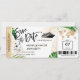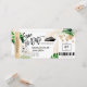 Boarding Pass Ticket Gold Flugzeug von Destination Beach Hochzeit Save the Date mit Kreuzfahrtschiff-Symbol mit tropischen Blätter
