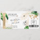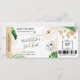 Destination Beach Wedding Boarding Pass Ticket Gold Flugzeug Save the Date mit Herz und Flugzeug Icon mit tropischen Blätter