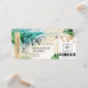 Tropical Island Destination Beach Wedding Boarding Pass Ticket Gold Plane Save the Date with heart and plane icon with tropical leaves