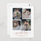 Diese einfach aber ultra moderne Hochzeit speichert die Datums-Postkarte vier Ihrer bevorzugten persönlichen Fotos in einem einzigartigen, vielschichtigen Look Foto Raster. Das boho terracotta und weiße Kartendesign zeichnet sich durch elegante, trendige handgeschriebene Schrift-Typografie aus und bietet einen Platz für Ihre Hochzeitsinformation in einem koordinierenden serifenlosen Schriftart.