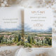 Ankündigen Sie Ihre Hochzeit mit dieser rustikalen Aquarellkarte "Save the Date", die eine atemberaubende Darstellung von Borgo di Castelvecchio, Toskana, Italien enthält. Die Karte präsentiert eine harmonische Mischung aus sanften Erdtönen, darunter olivgrün, goldbeige und warmen Terrakotta. Die detaillierten Aquarellbilder spiegeln das Wesen der toskanischen Landschaft mit ihren sanften Hügeln, Zypressen und charmanten Villen wider, die ein Gefühl von Romantik und rustikaler Eleganz wecken. Diese Karte ist perfekt für Paare, die eine Hochzeit in Urlaubsort planen. Sie Set für einen angenehmen und malerischen Tag. Passen Sie Ihre Hochzeitsdetails an, um einen unvergesslichen ersten Eindruck zu erhalten.
