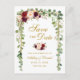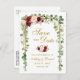 Modernes elegantes, botanisches grünes Eukalyptus-Blätter, Watercolor Burgunder Marsala mit Blumen, Goldrahmen, Save the Date Verlobungs-Postkarte