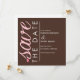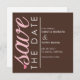 Dieser bezaubernde Ankündigung Datum freihalten enthält den Satz "Save the Date" in Rosa und Weiß auf den verlassen der Ankündigung, und Ihre Personalisierung auf der rechten Seite in Weiß.