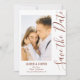 Save the Date Brown Stylish Script Modern Wedding Cards bietet einen weißen Hintergrund mit Ihrem eigenen Foto. Personalisieren Sie Ihren Text, indem Sie den Text in den dafür vorgesehenen Textfeldern bearbeiten. Entwickelt für Sie von ©Evco Studio www.zazzle.com/store/evcostudio