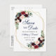 Save the Date Burgundy Blauer Goldrahmen Ankündigungspostkarte