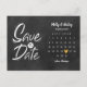 Diese boho-Save the Date-Karte zeigt einen Kalender und eine hübsche goldene Liebe, die Ihr besonderes Datum auf einem Chalkboard-Hintergrund hervorhebt. Die Rückseite hat zusätzliche Save the Date Details, einschließlich Ihrer Hochzeitswebsite, mit Ihrer Rücksendeadresse und Platz für die Adresse Ihres Empfängers.