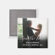 Dieses moderne Skript-Foto speichert den Datums-Magneten mit Ihrem speziellen Foto, das mit einem Skript Save the Date über Ihren Namen und Nachricht in weißer Typografie überlagert wird. Entwickelt von Thisisnotme©