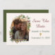 Eine elegante, Christliche Crossblumenbogenkarte mit Save the Date Hochzeitszelt, die Imitate mit goldenen Akzenten mit rot-rosa Blume und Aquarell-Grün empfängt. Fügen Sie Ihr Foto hinzu - sowie Ihre Namen und Ihr Hochzeitstermin zu unserer Kalligraphie-Typografie, um ein schönes rett-the-Date für Ihre rustikale Hochzeit zu schaffen. Sie können die Hintergrundfarbe für einen modernen weißen Hintergrund löschen.