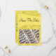 Diese elegante "Save the Date" Ankündigung mit passenden Gegenständen ist mit einem gebrochenen gelben, spiralförmigen digitalen Kunsthintergrund und einem ergänzenden, farbenförmigen Banner an der Oberseite konzipiert. Das Design kann für jeden Anlass dienen, wenn Sie die Vorlagenfelder mit Ihren Daten ausfüllen, unerwünschte Informationen entfernen und/oder auf die Schaltfläche "Anpassen!" klicken, um einen Schriftart auszuwählen, den Sie vorn und hinten bevorzugen. Auf der Vorderseite, ersetzen Sie das Template Foto mit Ihrem Foto und es ist fertig. Unten sehen Sie den Umschlag in A6-Größe, in den die Ankündigung passen wird, einen passenden, herzförmigen Aufkleber mit der Anzeigenkarte, eine Porto-Briefmarke, um diese raffinierte Kombination und einen quadratischen Magneten zu senden.