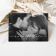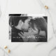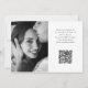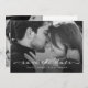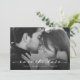 Diese einfache und stilvolle Hochzeit speichern die Datums-Foto-Karte verfügt über eine delikate, elegante, weiße Drehbuch mit zwei Ihrer Lieblings-persönlichen Fotos. Weitere Details und Informationen zur Hochzeit und ein QR Code können auf der Rückseite mit einem minimalistisch schwarz-weiß Design gehen.
