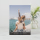 Diese moderne Foto Save the Date-Karte bietet Ihnen Ihr spezielles Foto, das mit einem eleganten Skript Save the Date über Ihren Namen, Datum und Ort in weißem Text überlagert wird. Entwickelt von Thisisnotme©