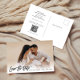 Diese Ankündigung Datum freihalten enthält die Schriftzeichen-Schrift, Ihr Lieblings-Foto und Ihren benutzerdefinierten Text sowie einen optionalen QR-Code auf der Rückseite in einem bequemen Postkartenformat.