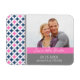Save the Date Hochzeitsmagnete in elegantem und modernem dunkelmarineblau, leuchtend fuchsienfarbenem, grauem und weißem Retro und lässigen Kreisen und Diamanten fett geometrischen Musters. Voll anpassbar mit Ihren Namen, Foto und Hochzeitsdatum, erhältlich in einer breiten Palette von passenden Hochzeitsartikeln. Kontaktieren Sie uns für eine individuelle Farbe oder Design.