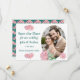Hier ist ein traditionelles Design mit allen Elementen inklusive einem ovalen Foto und Blumenmuster. Die Rückseite dieses Designs hat ein rosa Blumenmuster, das sich mit den Farben in der Vorderseite koordiniert.