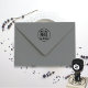 Latex Briefmarke mit Ihren Initialen und dem Datum der Hochzeit im Retro Art Déco Stil. Ideal für DIY Hochzeit Save the Date lädt ein. Dieses Design funktioniert am besten auf den quadratischen Briefmarke.