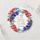 Aquarellfarbene Blumenstruktur mit tiefblauen/violetten Blumen, ergänzt durch rote Blume. Save the Date in einem skurrilen Goldskript mit handgezeichneten Herzen. Datum, Namen und andere Informationen können angepasst werden.