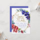 Aquarellfarbene Blumenstruktur mit tiefblauen/violetten Blumen, ergänzt durch rote Blume. Save the Date in einem skurrilen Goldskript mit handgezeichneten Herzen. Datum, Namen und andere Informationen können angepasst werden.
