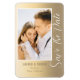 Save the Date Gold Stilvolle Script Moderne Hochzeitsmagnet-Karten mit goldfarbenem Hintergrund und eigenem Foto. Personalisieren Sie Ihren Text, indem Sie den Text in den dafür vorgesehenen Textfeldern bearbeiten. Entwickelt für Sie von ©Evco Studio www.zazzle.com/store/evcostudio