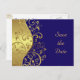 Save the Date - Gold-Wirbel und Dunkelblau Ankündigungspostkarte