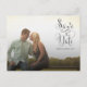 Auf der Vorderseite dieser Designer-Postkarte befindet sich eine wunderschöne, grau/graue Schriftzeichen-Schrift, die Sie mit Ihrem eigenen Verlobung/Save the Date Foto-Portrait hochladen können. Einfach und schnell personalisieren Sie diese Designerin professionell Save the Date Postkarte hier und jetzt, indem Sie einfach den Beispieltext tippen und Ihr eigenes Foto hinzufügen. Elegante, schicke, einfache und klassische Marineschrift/kursive Typografie