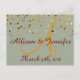 Dies ist schlicht grün, grau und gold Glitzer Imitate Folie Konfetti "Save the Date" Postkarte für die Hochzeit.