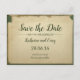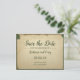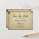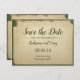 Eine Vintage, inspirierte, beige und grüne Postkarte Save the Date Hochzeitsnacht.