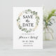 Save the Date - Grüne Eukalyptus-Foliage Kranz-Einladung. Elegante botanische Einladungskarte. Das elegante Design ist mit handgemalten Aquarellgrün eucalyptus-Kranz und Skript-Schriftart ausgestattet. Personalisieren Sie Ihre persönlichen Daten.