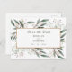 Eine moderne, Save the Date Hochzeitspostkarte mit Aquarellblatt und Blumendesign mit Goldrahmen. Schicken Sie das bitte vor Ihrem Hochzeitstag. Jeder Text kann individuell angepasst werden, oder der Text kann nach Belieben gelöscht werden. Diese Postkarte ist Teil einer Hochzeitskollektion, daher bitte die anderen Artikel ausfüllen. Wenn es andere Produkte mit diesem Design gibt, die Sie möchten, kontaktieren Sie mich bitte unter lesley@ahahdodo.com