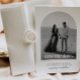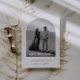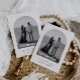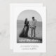 Ein schlichtes Save the Date Design mit einem eigenen Foto in Bogenform, mit "Save the Date" über der Oberseite und einem kleinen Herz daneben. Sie können den gesamten Text in diesem Design anpassen und auch die Farbe des Textes und das kleine Herz.