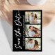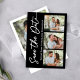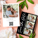 Dieses Design verfügt über eine Save the Date, eine Hochzeitkarte mit modernem minimalistischem Stil, eine 4-Foto-Collage mit Schwarz und Weiß, ein einfaches Typografie-Design mit einzigartigem Kalligrafieschrift und einen scannbaren QR-Code, um Ihre Hochzeitsdetails zu teilen.