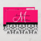 Save the Date Hot-Pink-Monogramm-Damaskarte Ankündigungspostkarte