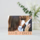 Ein moderner Ankündigung Datum freihalten ist der ideale Ausgangspunkt für Ihre Hochzeitspläne. Mit einer Fotovorlage und einer fett "Save the Date" formatierten Typografie in luxuriösen Imitaten aus metallischem Gold auf einem weichen pfirsichfarbenen Hintergrund strahlt es Eleganz und Stil aus. Personalisieren Sie es mit Ihren eigenen Daten, um eine unvergessliche Ankündigung für Ihren besonderen Tag zu erstellen.