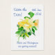 Eine "Save the Date!"-Karte mit einem Spray von wunderschönen, gelben "Dreaming Spires" Kletterklettern Rose, von einem Aquarellbild von Judy Adamson.
