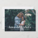 Moderne und skurrile Foto Save the Date flache Karte mit weißer, moderner Kalligraphie mit dreieckigen geometrischen Mustern. Sie können das Foto, die Texte und das hintere Muster anpassen. Eine Postkartenversion steht ebenfalls zur Verfügung.