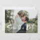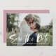 Weiße Pinselhandschrift Foto Save the Date Karte. Stilvolle handgeschriebene Foto-Save the Date-Karte mit einem schönen Pinselskript mit rosa lila Rückenfarbe. Dieses Foto Save the Date ist perfekt für jede Jahreszeit. Personalisieren Sie Ihre Lieblings-Horizontale Foto.