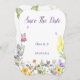 SAVE THE DATE KARTE MIT WILDBLUMEN UND SCHALTFLÄCHEN, PERFEKT FÜR WOHNUNGEN ODER BRAUTPARTYS, FRÜHJAHR UND SOMMER.