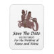 Ein Kühlschrankmagnet mit Save the Date und Namen und Hochzeitsdatum. Behalt das Hochzeitsdatum vor den Augen und gib den Gästen ein schönes Geschenk. Einfach anpassen, in Boxen zur Verfügung gestellt. Biker Hochzeitsgroom Reitpillion, stationäre Sets.