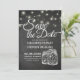 Save the Date einladende Vorlagen Hochzeit - Elegantes Save the Date Schreiben von Script und Vintage Mason Jar String Lights mit Grunge Black Chalkboard Hintergrund. Ein perfektes Design für Ihren großen Tag. Alle Textstile, Farben, Größen können an Ihre Bedürfnisse angepasst werden!