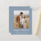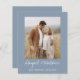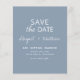Budget Personalisieren Sie diese Dusty Blue und White One Foto Einfache und elegante doppelseitige Save the Date Einladung mit Ihrer Nachricht und Details. Diese schicke Einladung beinhaltet eine moderne und elegante, handgeschriebene Schrift-Typografie für die besondere Hochzeit zu sein.