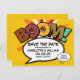 Save the Date Modernes Fun Comic Buch Boom Ankündigungspostkarte