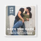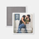 Moderne, aber mit einem rustikalen Flair, ein Foto des wunderschönen Ehepaares füllt den Rahmen, und ein hübscher, stetig grau blauer Banner hält den Monat, Tag und Jahr des Hochzeitstages. Ein perfekter Magnet für lassend Gäste, die über die Verlobung und den Hochzeitstag Bescheid wissen.