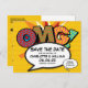 Eine lustige, coole und trendige Retro-Comic-Buch Pop kunstinspiriert Save the Date Einladung, die das Wummis, zap, pow in jedem Hochzeitstag Ankündigung. Auf der Rückseite finden Sie zusätzliche Ereignisinformationen. Entwickelt von Thisisnotme©