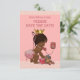 Elegante personalisierte, Vintage, ethnische Prinzessin Save the Date Baby Dusche Einladungen Vorlage für afroamerikanische Babys mit einer schönen Vintagen Abbildung eines niedlichen und bezaubernden Babys mit stilvollen rosa Windel, Perlen, Bänder und Goldkrone. Sie spricht über ein altes rotes Retro-Telefon, das Sie Save the Date frage! Sie hält einen kleinen rosa Koffer und ihr sonderbarer Teddybär lehnt sich davor ab - sie ist voll gepackt und bereit für ihre Ankunft! Der Hintergrund ist ein hübsches Rosa mit einem eleganten, modernen, zeitgenössischen rosa Backenrand und rosa Text. Schick, trendig, lustig, modern, feminin lustig, lustig, lustig, humorvoll, skurril, erschwinglich, personalisiert / personalisiertes, maßgeschneidertes Baby Mädchen Save the Date Vorlagen. Auf beiden Seiten dekoriert. Die Rückseite / Rückseite hat das gleiche Design. Doppelseitiger Druck / vorne und hinten. Wenn Sie Hilfe bei der Anpassung Ihres Produkts benötigen, kontaktieren Sie mich bitte über meinen Shop und ich werde Ihnen gerne weiterhelfen. Ich habe passende Produkte in meinem Geschäft.