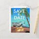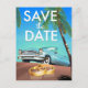 Save the Date Oldtimer und Hochzeitsringe. Postkarte