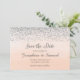 Ankündigung Datum freihalten mit Imitaten silberne Glitzer-Design und ombre pfirsichfarben Aquarell Hintergrund.
