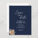Tief blau "Save the Date" für Hochzeiten, mit Aquarell-Aprikosen-Blume und Gartenblättern. Ein schlichtes, aber elegantes zeitgenössisches botanisches Design, inspiriert mit boho Vintagen Stil, mit Monogramm auf der Rückseite.