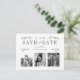 Diese Save the Date Postkarte in Waldgrün ist ideal für eine Herbst- oder Winterhochzeit