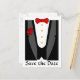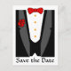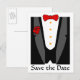 Save the Date Postkarten, mit einem coolen Tuxedoentwurf. Fertigen Sie mit Ihrem eigenen Text auf der Rückseite mit Ihren Informationen besonders an u. erhalten Sie das zusammenpassende Porto für einen Designerblick!