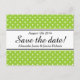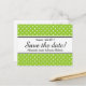 Save the Date Postkarten | apfelgrüne Punkte. Modernes Polka Dot Muster Design für Hochzeitspaare. Eleganter Skripttext.