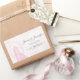 Ein wunderschönes romantisches Hochzeitsdesign-Set aus rechteckigen Aufklebern, die die gerahmt kissenden Silhouetten der Braut und Bräutigam vor einem traumhaft rosa Hintergrund zeigen, mit anpassbaren Datum, Namen und Wörtern "Save the Date" an der Seite.